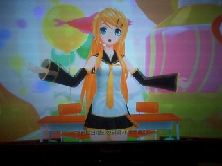 キター!!携帯でとったから死ぬほど画質が悪いですが、リンちゃんなう!のリンちゃんです。
